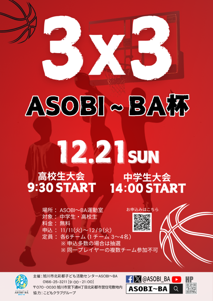 12月21日(日)『3×3 ASOBI~BA杯 中学生大会・高校生大会2025』